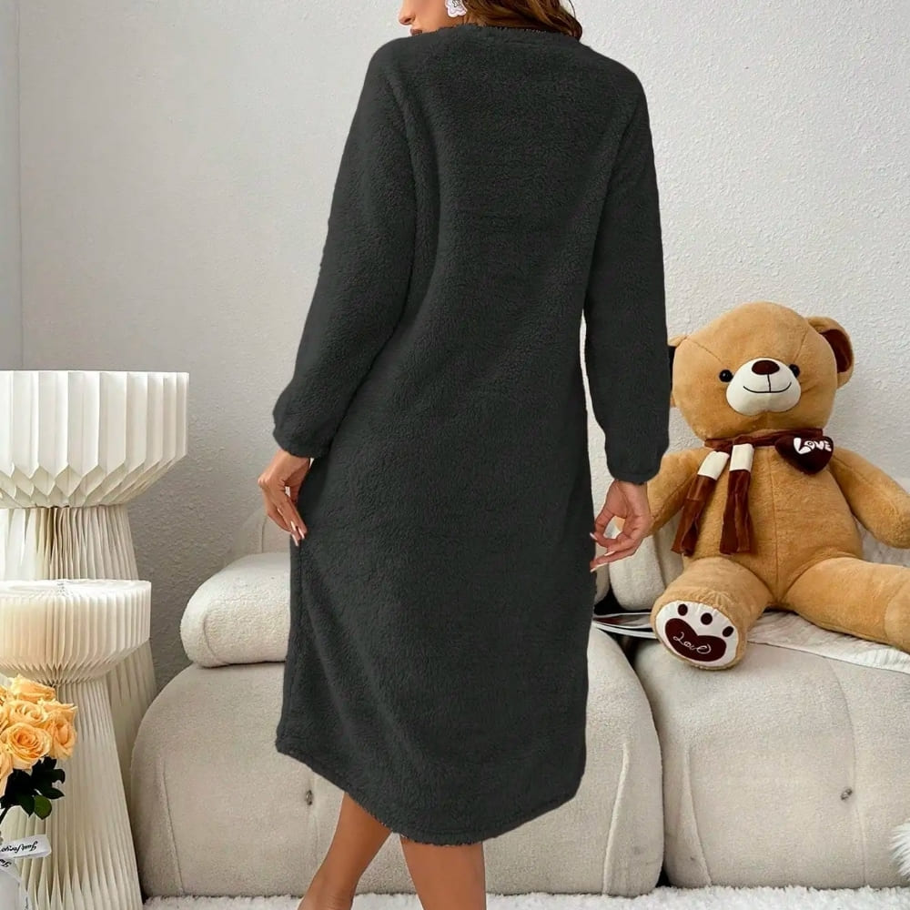 Chaque contact avec cette chemise de nuit femme hiver en tissu polaire est une véritable caresse sur la peau. Son toucher ultra-doux procure une sensation apaisante, parfaite pour un moment cocooning après une longue journée.