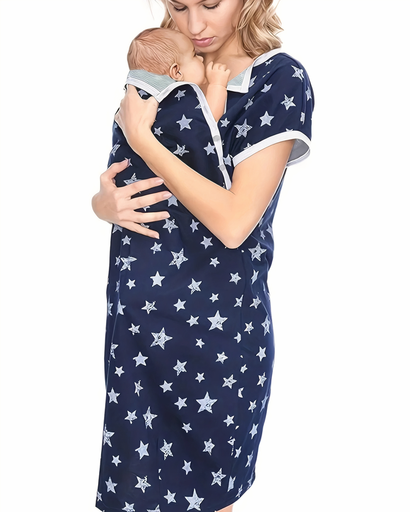Grâce à son ouverture frontale souple, cette chemise de nuit facilite le contact direct avec bébé. Il se blottit contre votre poitrine sans gêne, ni tissu encombrant.