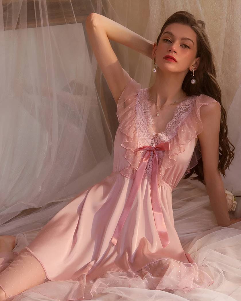 Les détails subtils de dentelle ainsi que ce nœud au niveau de la poitrine apportent une touche de sensualité discrète, idéale pour des nuits où le style et le bien-être vont de pair.