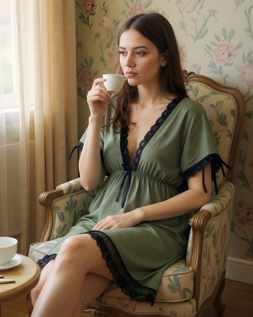 La nuisette verte courte en dentelle est un vêtement de nuit très élégant et sexy. Elle est fabriquée en dentelle noire et est ornée de motif et d’un ruban sur le bas du col. Sa coupe courte et ajustée mettra vos formes en valeur tandis que sa douce dentelle vous envelopera de douceur. Cette nuisette est parfaite pour une soirée romantique ou tout simplement pour profiter d’un moment de détente à la maison. Vous pouvez l’accompagner d’une paire de chaussettes assorties ou d’un peignoir pour un look plus glamour.