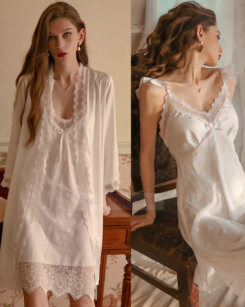 L’ensemble nuisette femme et kimono blanc avec dentelle incarne l’élégance féminine à son apogée. Ce ravissant ensemble est confectionné dans un tissu doux et soyeux, qui glisse délicatement sur la peau pour offrir un confort divin.