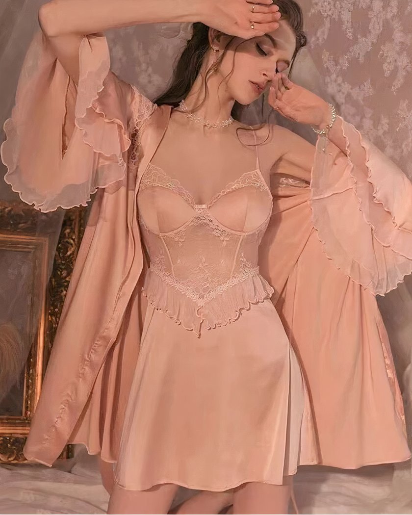 Ensemble Nuisette et Kimono Sexy en Satin de Polyester