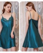 Cette nuisette en satin vert canard est ultra féminine et sexy. Le décolleté en dentelle ajoute une touche de sensualité, tandis que la silhouette moulante met en valeur votre corps tout en étant assez ample pour vous laisser de l’aisance. C’est un vêtement de nuit parfait pour une soirée intime ou pour tout simplement vous détendre à la maison.