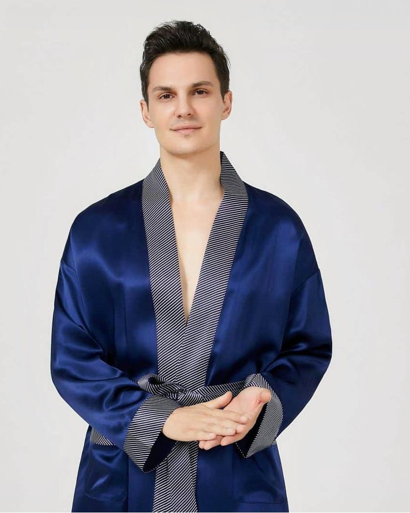 Cette Robe de chambre courte en soie pure de luxe est un vêtement de nuit élégant et confortable pour hommes. La soie est une matière douce et légère qui permet à votre peau de respirer, ce qui vous aide à mieux dormir. La coupe courte de la Robe de chambre vous offre une liberté de mouvement et vous permet de vous sentir à l’aise toute la nuit. Les finitions soignées et les détails élégants de cette nuisette en font un vêtement de nuit de luxe parfait pour les hommes qui aiment le style et le confort.