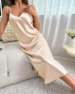 Avec un décolleté en V subtilement dessiné, la nuisette révèle juste ce qu’il faut pour flatter votre silhouette sans être trop osée. Idéale pour des soirées élégantes ou des nuits confortables, elle combine raffinement et confort pour un look impeccable. Elle deviendra rapidement une pièce indispensable dans votre garde-robe.