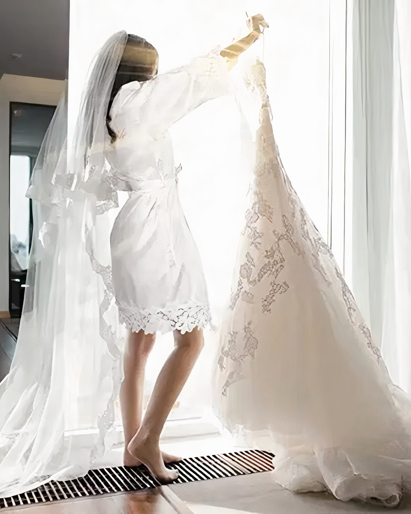 Après la cérémonie, ce peignoir restera un souvenir chargé d’émotions, un rappel tangible des rires partagés, des instants de fébrilité et de l’excitation d’un nouveau départ.