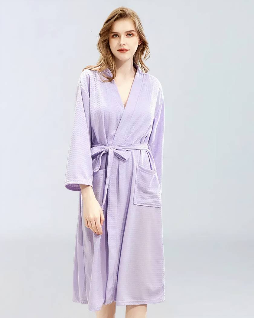 Sa ceinture à nouer offre un ajustement personnalisé, tandis que ses deux poches latérales ajoutent une touche de fonctionnalité à son design. Le coton caresse délicatement votre peau, transformant chaque utilisation en une expérience digne d’un spa.