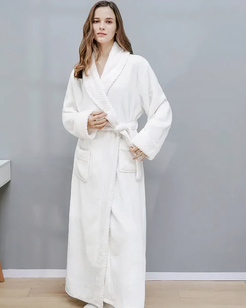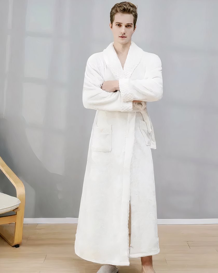 Le peignoir hôtel unisexe épais effet velours offre une expérience de confort inégalée, directement inspirée des hôtels de luxe. Confectionné en tissu de corail, ce peignoir hôtel allie douceur extrême et chaleur, disponible en blanc ou gris, pour s’adapter à tous les goûts.