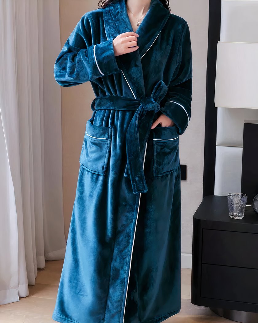 Après un bain relaxant, lors d’une soirée tranquille, ou pendant une matinée paresseuse, ce peignoir long avec poches et ceinture est l’accessoire idéal pour se détendre avec élégance. Sa facilité d’entretien et sa durabilité en font un compagnon de longue date pour tous vos moments de détente.