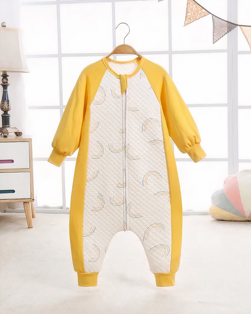 Offrez à votre petit trésor des nuits enveloppées de magie grâce à notre pyjama bébé avec motifs arcs-en-ciel. Fabriqué en pur coton doux, ce pyjama bébé jaune éclatant est embelli de joyeux arcs-en-ciel, promettant de transporter votre bébé dans un monde de rêves colorés et apaisants.
