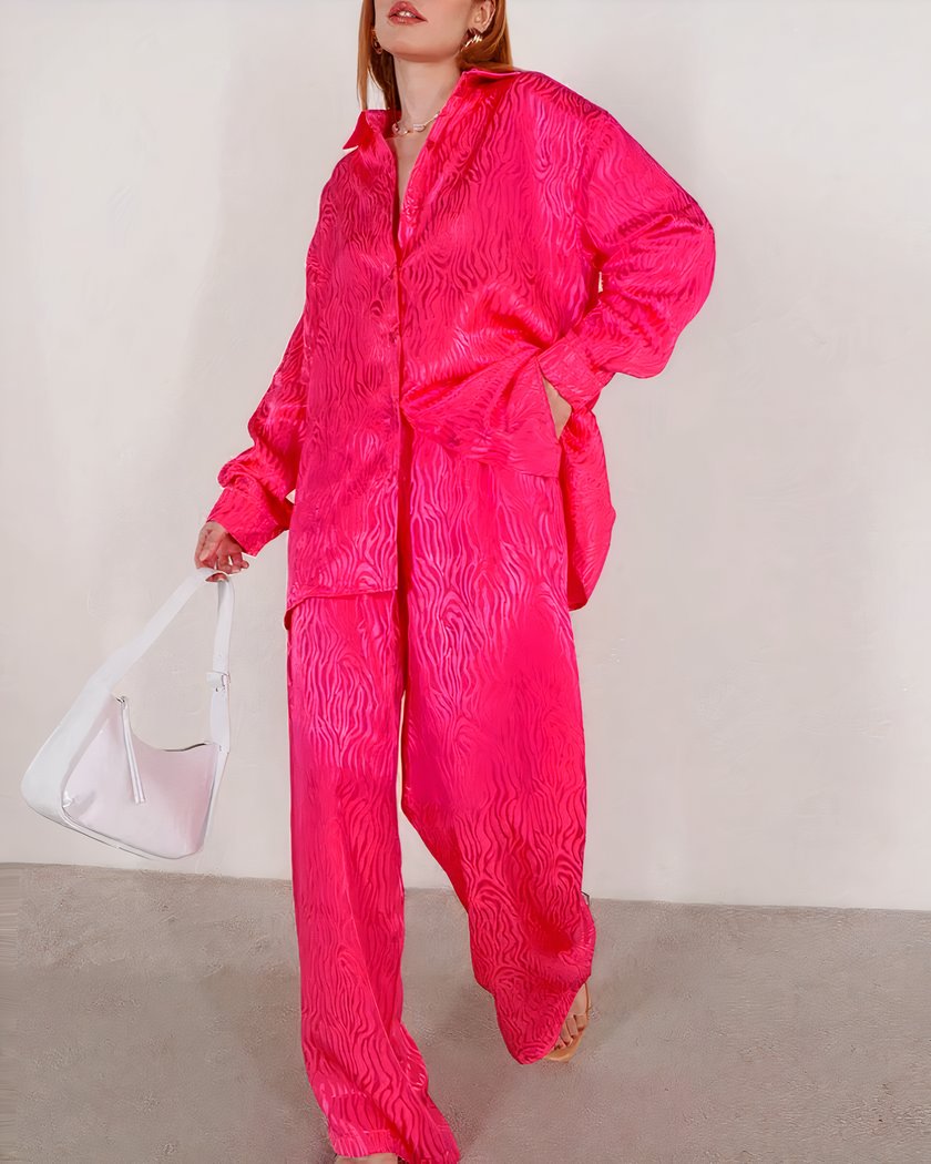 La sélection des matériaux pour ce pyjama rose satiné garantit non seulement un confort exceptionnel, mais aussi une durabilité remarquable. Le mélange de rayonne et polyester est conçu pour résister aux lavages répétés, assurant que votre pyjama conserve sa couleur vibrante et sa douceur soyeuse. Ce pyjama est un investissement dans votre bien-être nocturne, promettant de nombreuses saisons de confort et d’élégance.